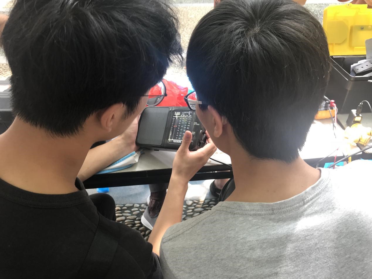 “这个是电位器问题,电位器换不了,你们要把里面的灰尘清理一下,最好用橡皮或者酒精棉球。”当成员们怔怔地对着损坏的收音机束手无策时,路过的一位大爷在了解了情况后,指出了解决途径,问题也自然是迎刃而解。这次义修活动也是年轻人们学习和理解的过程,通过实践寻找到理论应用时的局限之处,并加以改进,方能将书本上的知识充分地运用到生活中来。