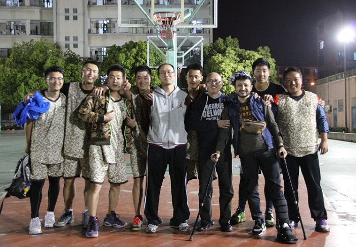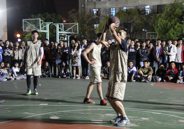 4月23日晚上,东校区篮球场热闹非凡,苏州大学第五届阳光体育节四人制篮球比赛决赛正在这里如火如荼地进行。经过多轮激烈拼杀,由王定杰、陈恺、邹德健、马龙、张凯、周子威领衔的我院代表队一路过关斩将,在战胜东吴商学院代表队后,成功登顶,夺得比赛冠军,在我院篮球史上写下了浓墨重彩的一笔,也为学院赢得了荣誉。院党委副书记、副院长刘鲁庆、团委书记黄宗杰现场观看并指导了此次比赛。