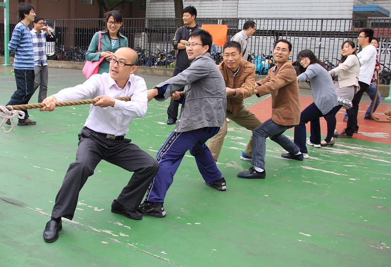 此次教职工运动会由拔河、趣味投篮、跳绳等比赛项目组成,而拔河项目作为第一项比赛,迅速点燃了老师们和场边同学的热情。拔河开始前,老师们纷纷摩拳擦掌,紧紧地握住手中的绳子。而随着裁判员一声令下,双方队员喊着口号,压着节奏向后拉动。而场边的同学也热情高涨,为老师们送来了欢呼声和加油声。比赛中,刘鲁庆书记两次滑到,但是依然露出了微笑,比赛结果在老师们的眼里并不重要,而他们也尽情享受着比赛,享受着运动的快乐。投篮比赛也充满了快乐,老师们由于平时对于篮球接触较少,比赛中虽然命中率都不是很高。每当投球失误,老师们互相调侃,笑声一片。而投进好球时,他们也会为彼此送去掌声。跳绳比赛、平衡乒乓球比赛等都充满了趣味,让运动会笑声、欢呼声不断,整个篮球场都洋溢着欢乐的氛围。