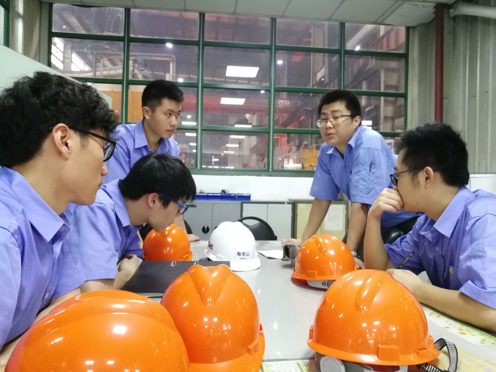 朝会结束后各同学去了自己分配的部门,陶课长为我们分配了任务,让我们在组长的带领下了解各个步骤的具体过程。虽然不需要我们动手,但是车厢艰苦的环境,还是让我们都汗流浃背。我们学到了很多书本没学到的专业词汇,看到了很多原本一无所知的机械设备。看着一根根奇形怪状的铁管在车床上加工后变成一根根精致的小铁棒,我了解到了这些操作人员的工作的不易,以及未来我们将要从事的工作。