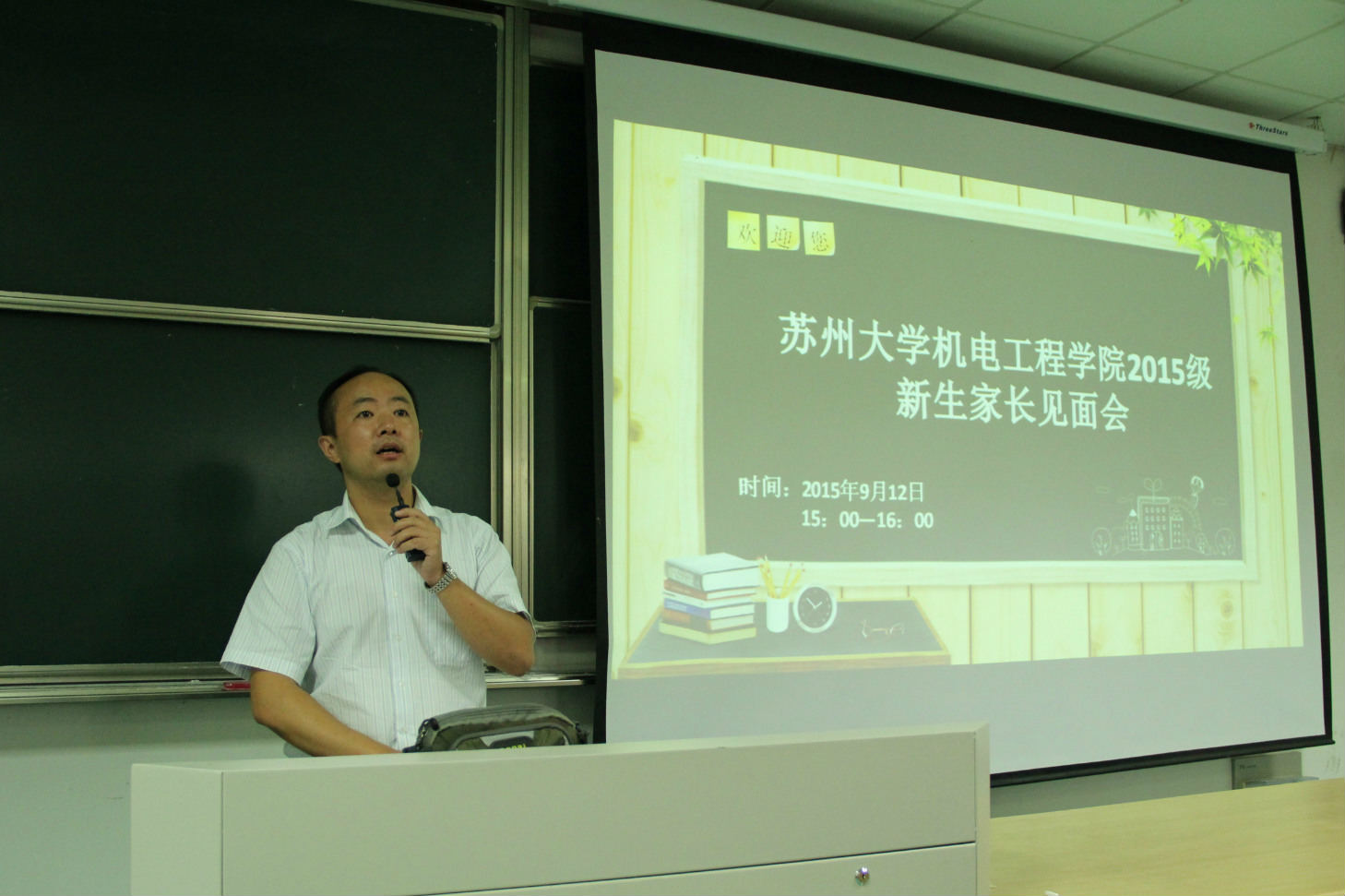 9月12日下午3点,机电工程学院2015级新生家长见面会在本部理工楼153教室举行。机电工程学院副院长陈再良老师及机电工程学院党委副书记副院长、2015级新生辅导员王振华老师及2015级各班班主任出席了本次家长会,会议由王振华老师主持。