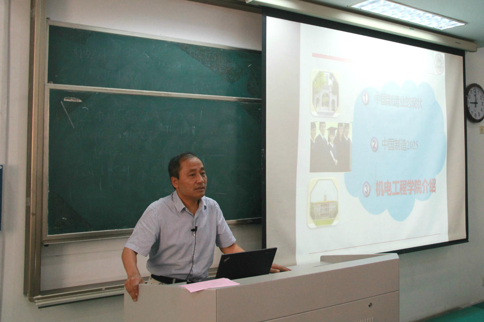 首先,党委书记刘鲁庆老师致辞,刘书记向2015级全体新生表示热烈的欢迎和祝贺,并向同学们提出了自己的希望,鼓励同学们用蓬勃的朝气、激昂的青春抒写人生的亮丽篇章,刘书记亲切的言辞中流露着对同学们深深的祝福和期冀。随后,孙立宁院长从“中国制造业的现状”、“中国制造2025”及“机电工程学院介绍”这三个方面深入浅出地讲解了专业方面的知识与就业前景,同时介绍了学院所取得的成就及未来前景,孙院长还播放了一些小视频让同学们更加深刻地了解了自己的专业。