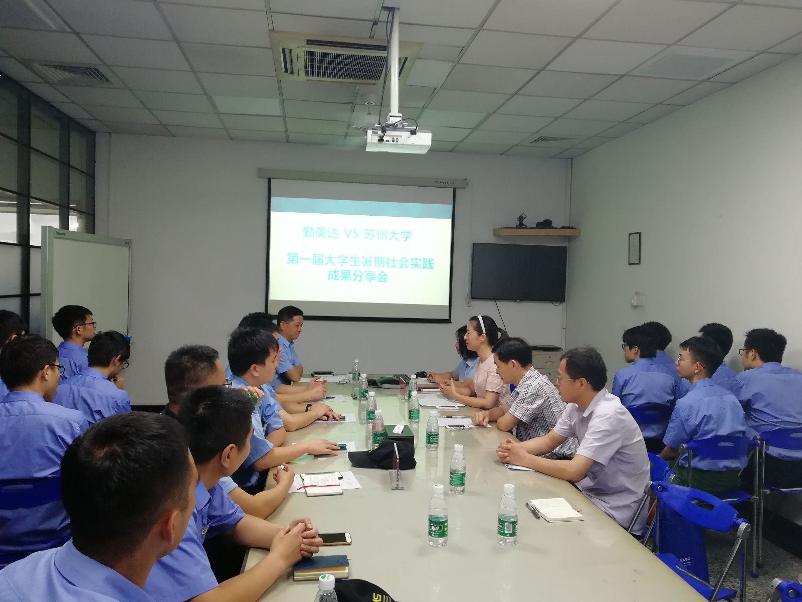 2018年7月16日下午,苏州大学机电工程学院暑期社会实践成果分享交流会在苏州勤美达精密机械有限公司举行。苏州勤美达副总经理颜福山、加工部副经理王细才、导师陶明山、伊加来、何昌禹、郑连杰、孟祥桥、苏州大学机电工程学院党委副书记、副院长袁红、机械工程系主任倪俊芳、专业指导老师施学斌、团委兼职副书记钱晨以及暑期社会实践学生代表共42人出席了本次成果分享会议。