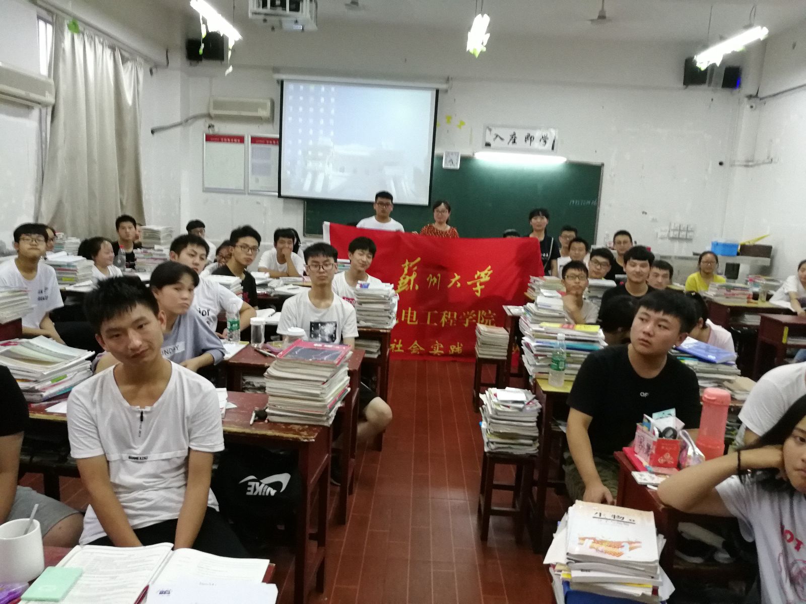 2018年7月15日下午4点天空虽然有白云遮住刺目的阳光,可天气的酷热丝毫不减,机电工程学院的“我为苏大代言”暑期社会实践团队如约来到安康市汉滨高级中学进行宣讲活动。