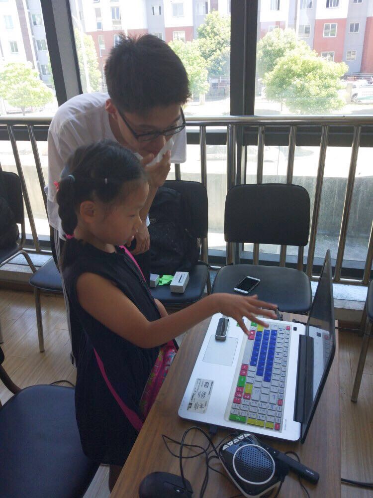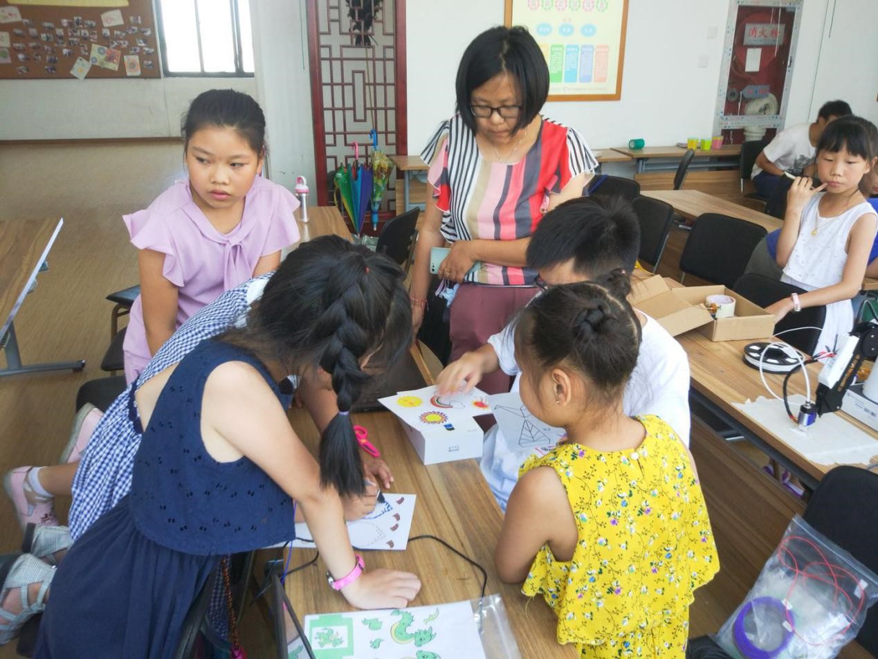 科普小课堂告一段落,孩子们纷纷跑向自己感兴趣的机器人,在志愿者的指导下亲手操作起来。功能各异的机器人让孩子们玩得不亦乐乎,这边几个在全神贯注地操作着乐聚小艾机器人,小艾立刻挑出了充满创意的舞蹈,那边的几个则在挥动着手臂,隔空玩起了水果忍者,想起刚才课堂上讲到的3D打印,孩子们都很好奇地聚在打印机前,志愿者便打印了孩子们喜欢的字送给他们,孩子们拿着“光”“华”“龙”的字样爱不释手。此外,会画画写字搭积木的机械手臂,3D打印笔,履带式机器人,mbot机器人也同样吸引着孩子们的目光,志愿者还带来了五颜六色的卡通模板,孩子们拿着3D打印笔画得不亦乐乎。