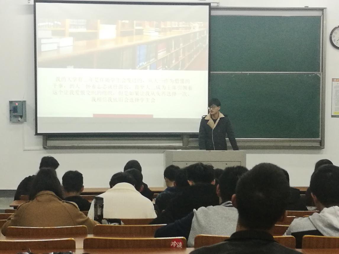 然后是体育部部长宋继聪上台向大家讲述了我院学生会为院学生运动会和校学生运动会能顺利、有序地举行而各司其职,相互协作的种种经过,两位部长均以生动幽默的口吻向大家讲解了举办各种大型活动的各种细节,细致耐心地教导着将来会扛起学生会大梁的17级学弟学妹们所要承担的责任,注意的事项,事无巨细,足见学长学姐们对工作的严谨态度,对学弟学妹的关心爱护。
