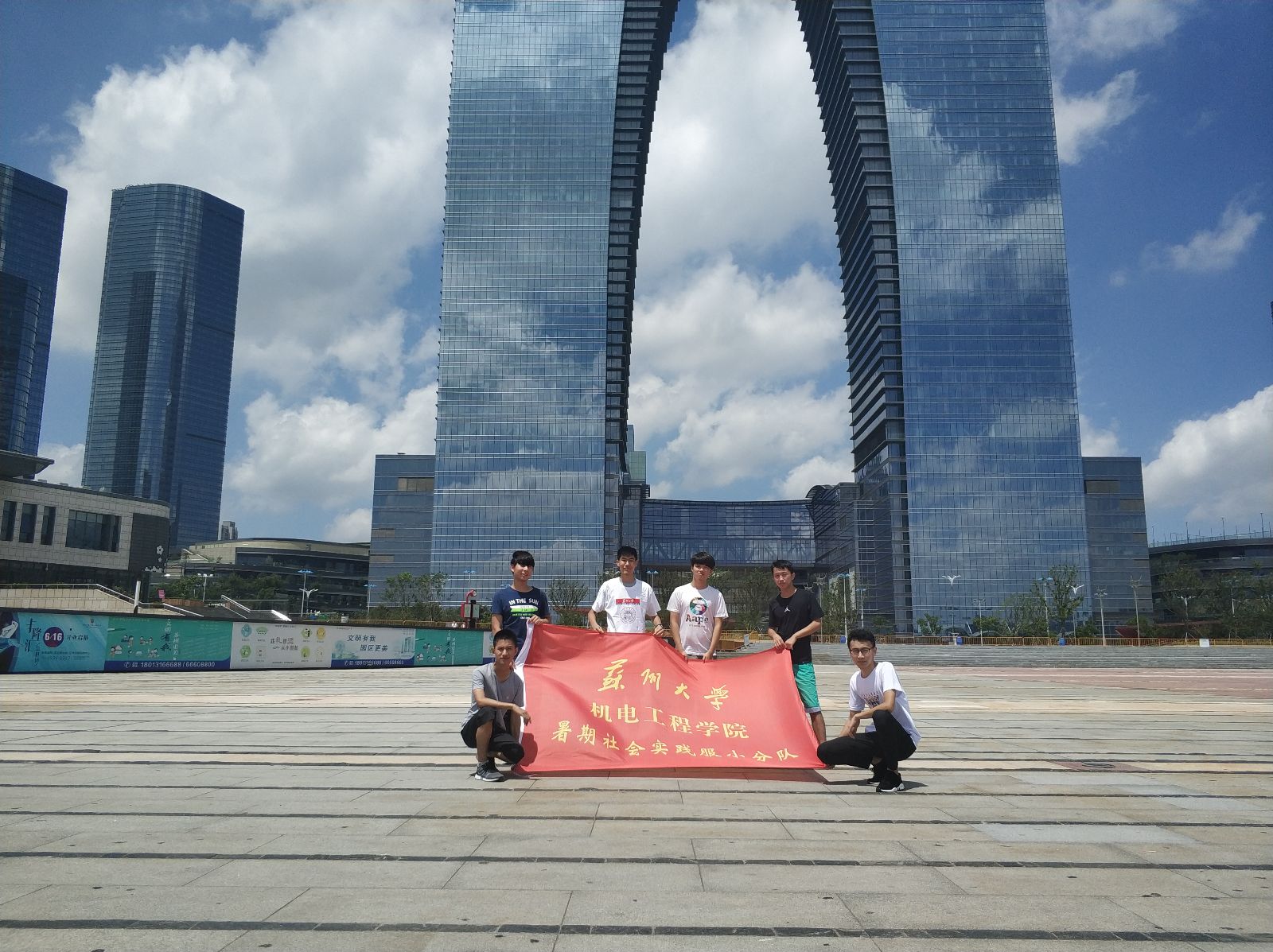 2018年7月10号上午8时许,苏州大学机电工程学院风雨“兼”程——对大学生兼职现状调查团队成员乘车来到本次暑期社会实践的第一站——苏州中心,开始了暑期社会实践调查。