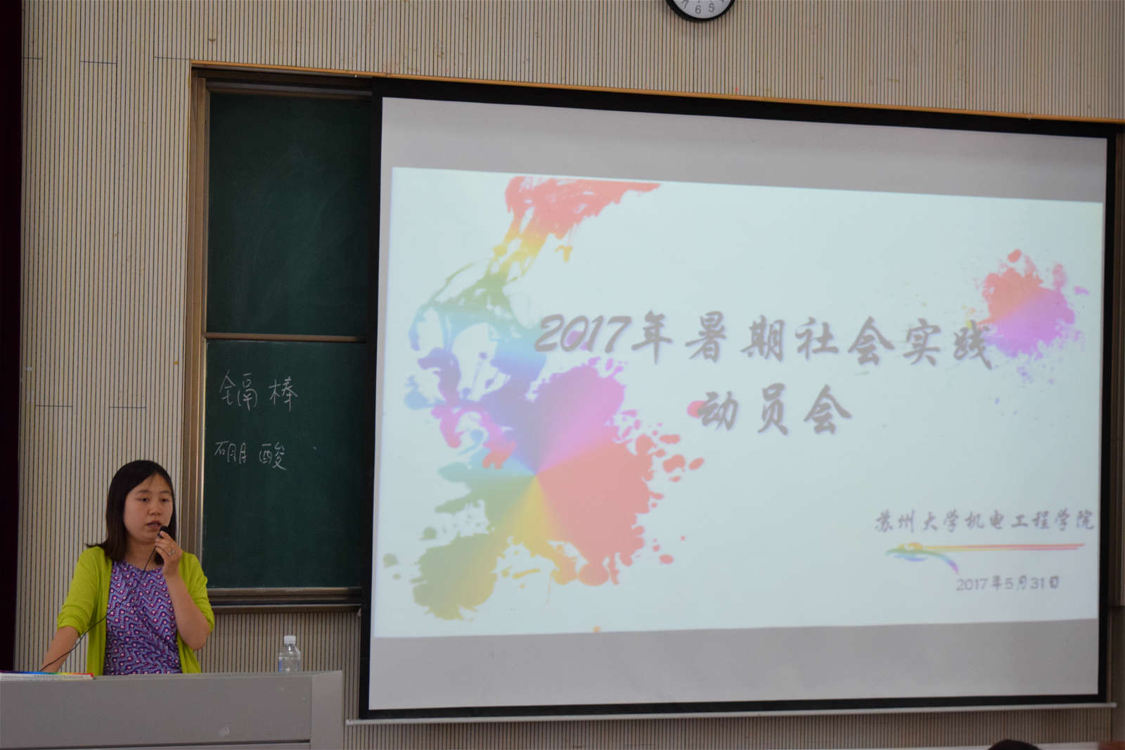 2017年5月31日,苏州大学机电工程学院团委在阳澄湖校区2B教学楼110教室举办了2017年暑期实践活动的宣讲会,会议圆满成功。为深入学习宣传贯彻习近平总书记关于青年成长成才的一系列重要论述,引领和帮助广大青年学生在社会实践中受教育、长才干、作贡献,以青春建功的实际行动,为全面建成小康社会贡献青春力量,以优异成绩喜迎党的十九大胜利召开,根据上级有关文件通知精神,结合我院实际,启动以“喜迎十九大•青春建新功”为主题的暑期社会实践。机电工程学院团委书记李丽红老师和暑期实践活动指导老师陈恺出席了本次活动并对参与此次活动的同学进行了指导。暑期实践活动是大学生暑期学习生活的重要组成部分,它对于培养大学生的动手能力、交际能力、综合素养等多方面有着不可替代的作用,是同学们成长过程中必不可少的磨刀石。