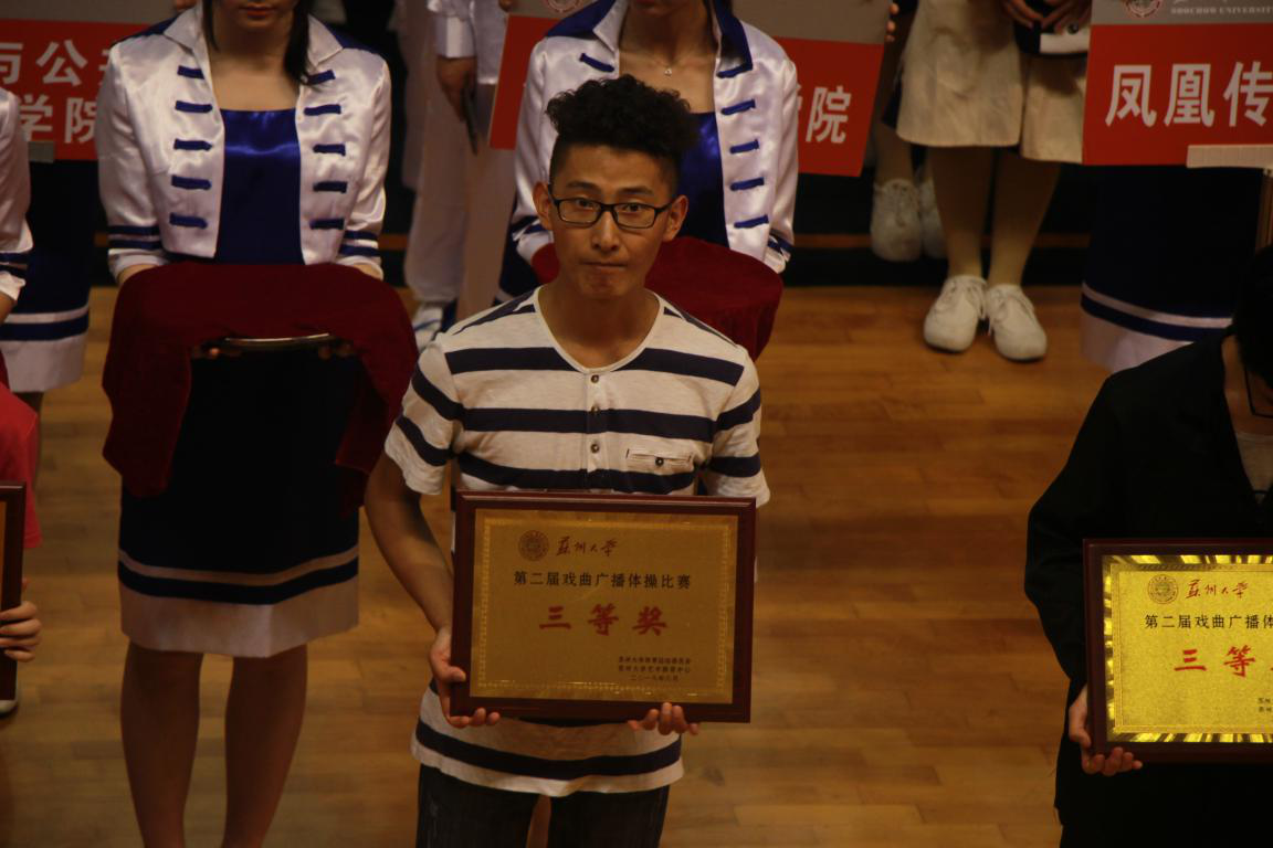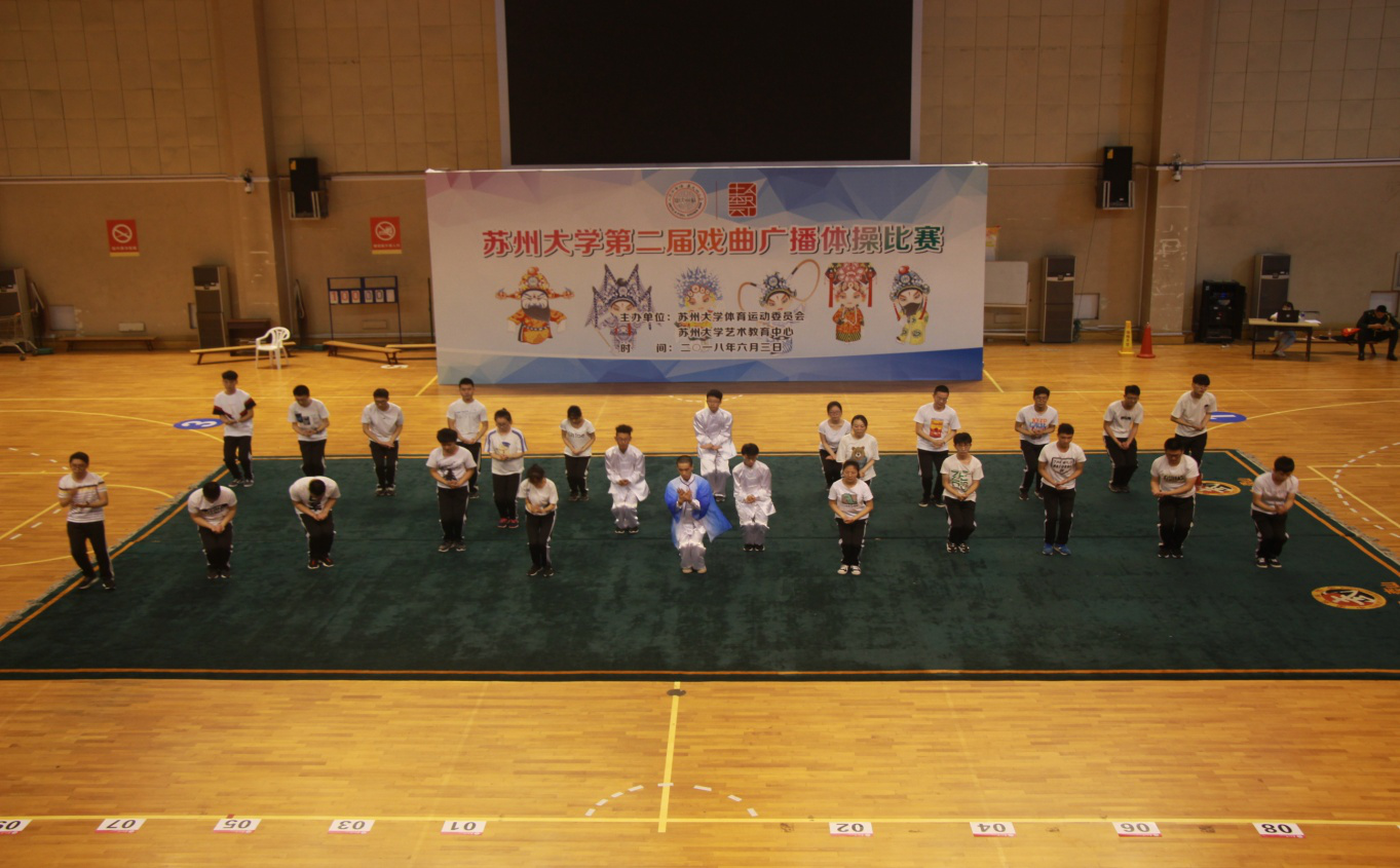 由苏州大学举办的第二届戏曲广播操比赛在六月三日于苏州大学东校区圆满落幕,本次比赛有25支来自各个学院的队伍参赛,机电工程学院学生会组织同学们积极地参与了比赛,本次比赛由学生会蔡雅程领队,赵颖、张艺带队和训练。