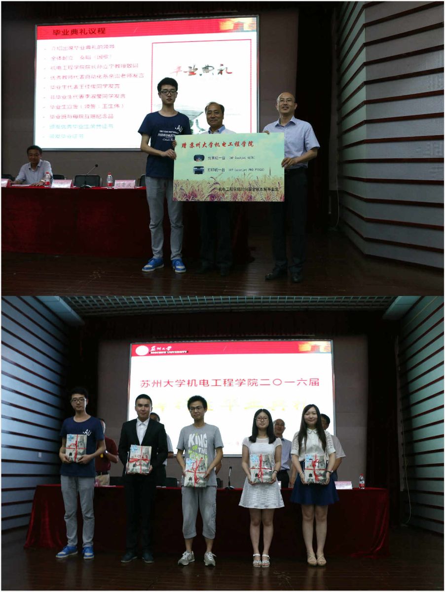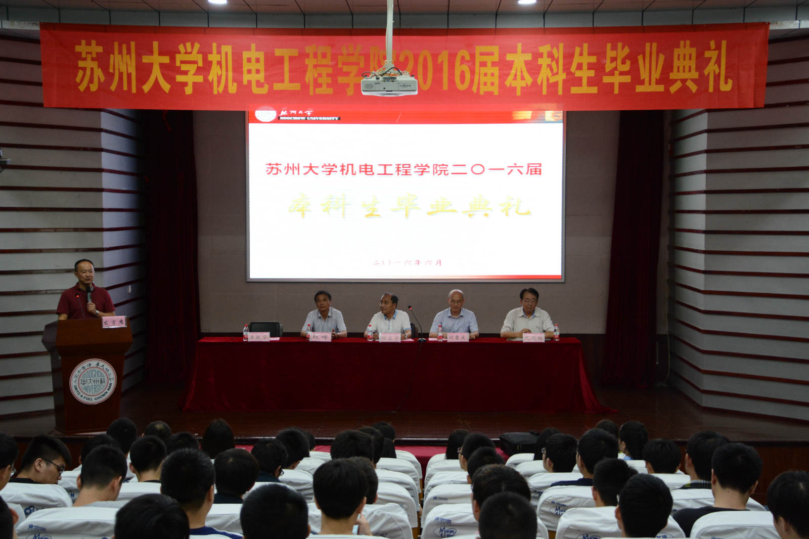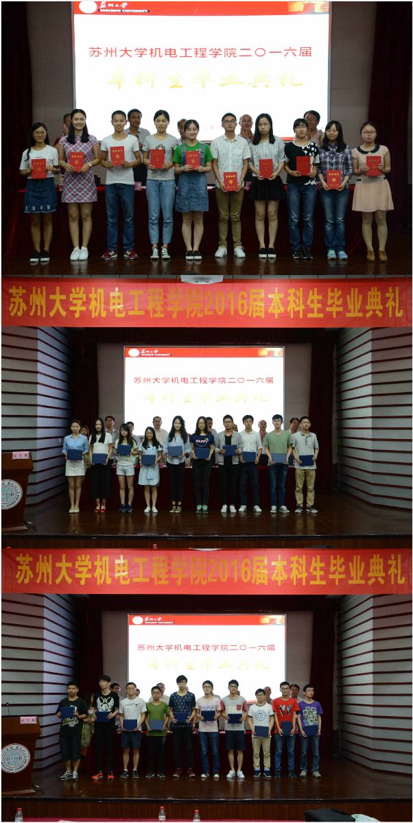 夏又至,又到了一年毕业季,2016年6月24日星期五下午2:00,苏州大学机电工程学院2016届本科生毕业典礼在本部红楼学术报告厅隆重举行。机电工程学院院长孙立宁、党委书记刘鲁庆、党委副书记副院长王振华、副院长尤凤翔、党委副书记赵峰,学院相关老师以及2016届全体毕业生出席了毕业典礼。毕业典礼由王振华主持。