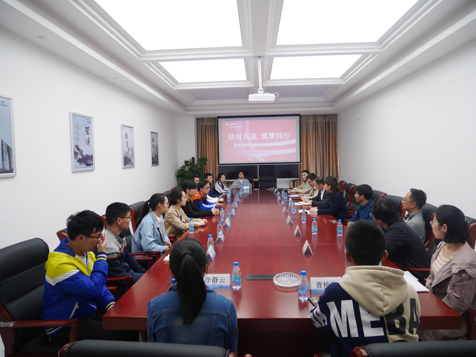 学院师生一行到达苏南UPFC站后,苏州分部的青年职工带领同学们参观了工作站的工作运营环境,细心讲解其工程背景、意义以及关键设备的工作原理。随后,在500千伏UPFC站会议室内,由国网江苏检修公司苏州运维分部团总支与机电工程学院举行结对帮扶仪式。陆振威书记为资助学生文晓送上慰问金,文晓感谢国网对于在校学生的爱心帮助,并表示会努力学习,怀一颗感恩之心回报社会。最后,全体与会人员进行大学生职业规划的专题讨论。陆振威书记对学院师生一行来到公司参观学习表示了热烈欢迎,为同学们详细介绍了公司的整体工作情况。吴伟斌班长与其他几位青年职工代表纷纷谈起自身的入职经历和工作感受,给予同学们“自信不自大,自谦不自卑”、“早规划,早打算”、“十分积极,十分努力”等建议,鼓励大家好好学习,尽早做好职业规划,形成积极的人生态度。学院师生听得十分投入,并围绕感兴趣的方面进行近一步交流,大家畅所欲言,气氛融洽,会议室不时传出热烈的掌声。