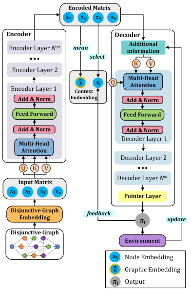 大规模生产系统实时控制一直是智能制造领域中极具挑战性的难题,近日,由杨宏兵老师(通讯作者)指导的我院本科生陈睿奇(第一作者)、黎雯馨的高级排产研究成果:“A Deep Reinforcement Learning Framework Based on an Attention Mechanism and Disjunctive Graph Embedding for the Job Shop Scheduling Problem”,在线发表于IEEE Transactions on Industrial Informatics期刊,该刊为中科院一区TOP期刊,影响因子达10.215。该项研究成果首次将Transformer 框架引入到智能制造系统,并基于Attention mechanism和Disjunctive Graph理论设计了一种新颖的深度强化学习模型用于解决智能制造过程中的实时调度问题,实验结果表明在大规模场景下,该方法性能优于google公司OR Tools以及当前的一些主要算法,进一步实验表明该方法仅需要在在少量场景下训练后即可用于其他不同场景下生产系统的智能调度,表现出良好的泛化性和鲁棒性,为大规模生产系统的智能控制提供了新的研究方向和思路。DOI: 10.1109/TII.2022.3167380