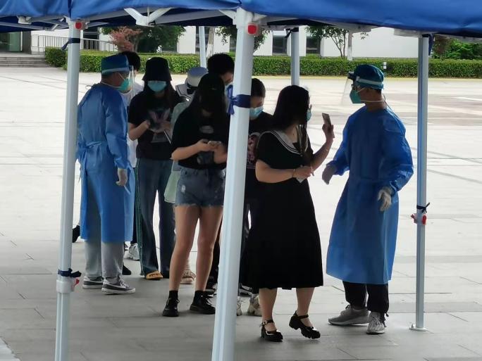 2022年6月3日上午,根据苏州大学疫情防控工作安排,机电工程学院在阳澄湖校区2B教学楼承担了核酸检测的采样、扫码、核查工作。正值端午,机电工程学院共有5名研究生加入核酸检验志愿者行列,我院党委副书记解笑、朱刚贤老师也作为志愿者一员,共同助力阳澄湖500余人核酸检测工作。倾情守护,同心抗疫,正是所有志愿者的积极响应和无私奉献,才守护了阳澄湖校园的温暖与安宁。
