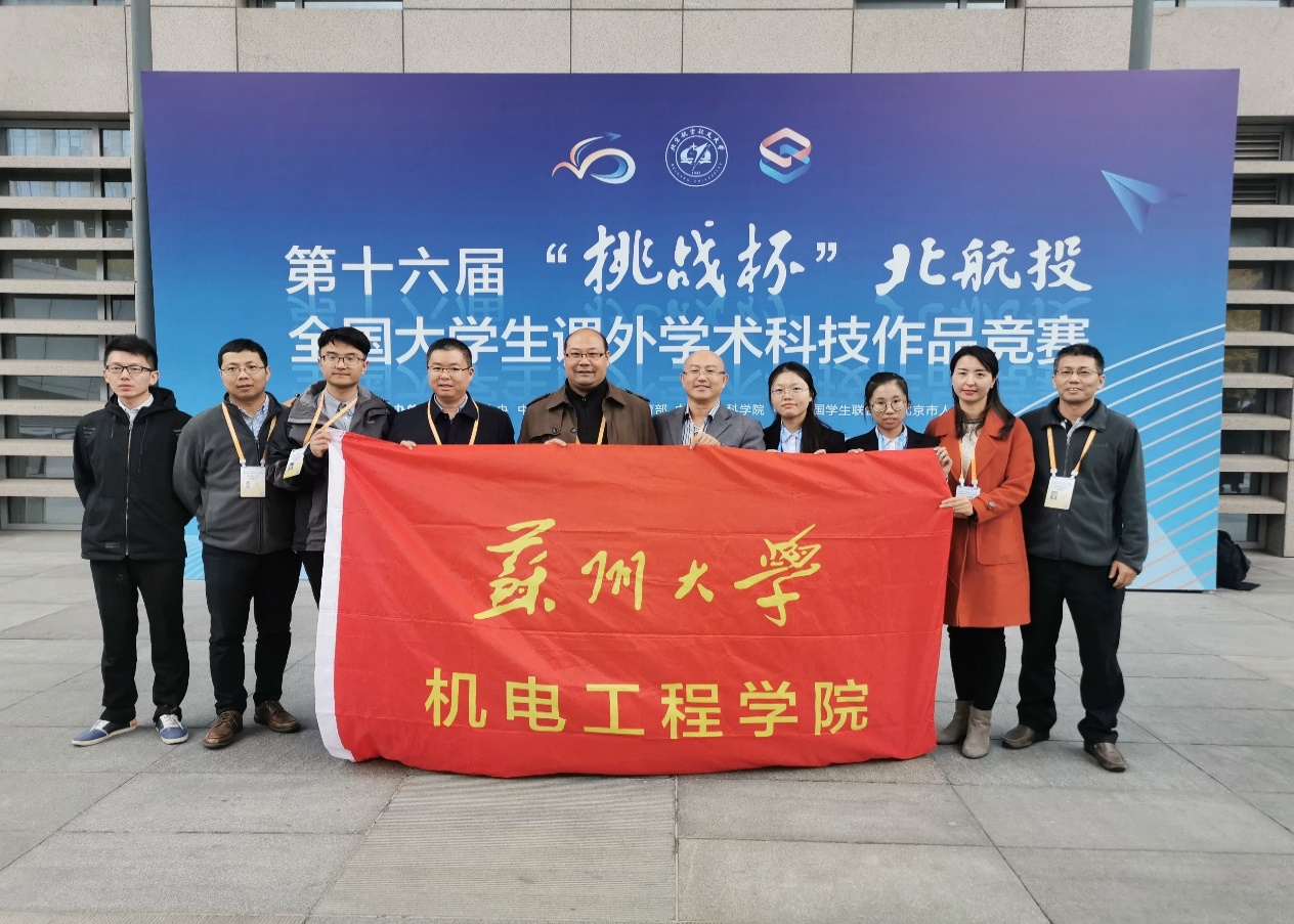 北京比赛期间,苏州大学党委常委、副校长刘标带领校团委等相关部门亲临现场,为参赛师生加油打气。他对学院、指导老师和同学们的付出表示充分的肯定,勉励同学们利用“挑战杯”的平台充分锻炼自已,提升自己,用过硬的专业知识、创新的思维为科技强国贡献苏大学子应有的力量。