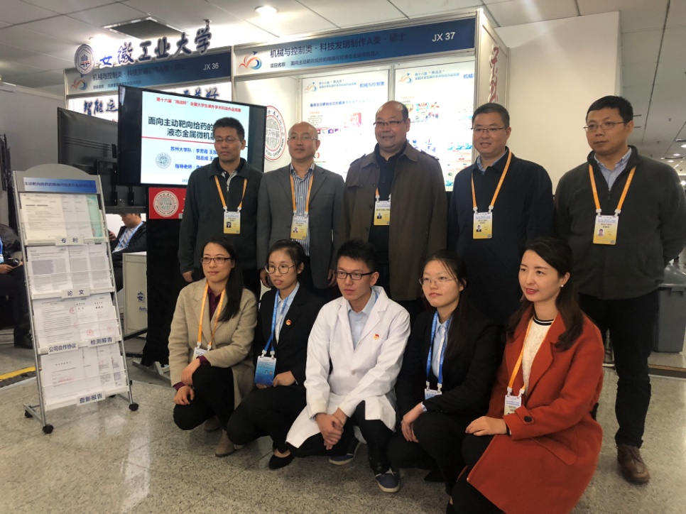 11月7日至13日,第十六届“挑战杯”全国大学生课外学术科技作品竞赛终审决赛在北京航空航天大学顺利举行。我院由李相鹏、匡绍龙两位老师指导,李芳霞、丁智宇、陆嘉成、王俊杰、李菲等同学参与的《面向主动靶向给药的精确可控液态金属微机器人》项目在比赛中斩获全国一等奖!