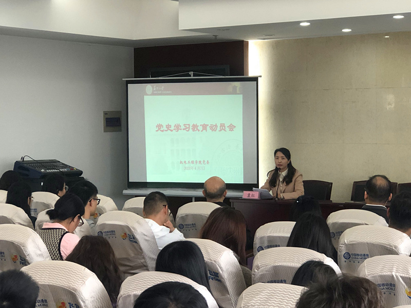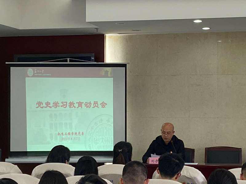 2021年4月7日,机电工程学院党委党史学习教育动员会在阳澄湖校区行政楼300会议室举行,学院党委书记刘鲁庆,党委副书记袁红,专职纪检委员姚建萍、党委委员、副院长孙海鹰、陈涛,各党支部书记、委员和党员代表出席会议。会议由专职组织员沈爱军主持。