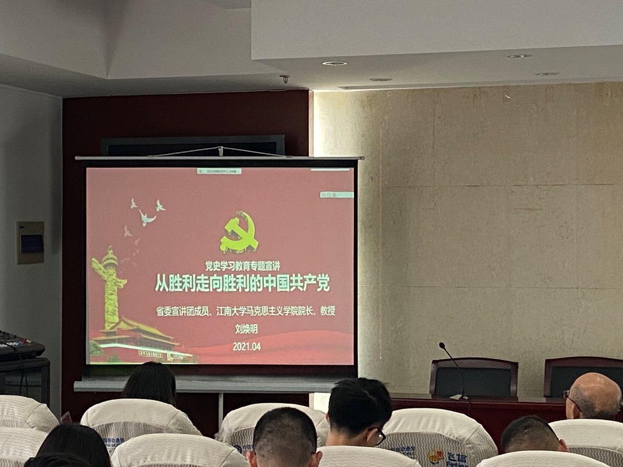 随后,与会党员共同收看了省委党史学习教育宣讲团成员刘焕明教授的党史学习专题报告“从胜利走向胜利的中国共产党”。他从开展党史学习教育的重要意义、全面了解党的百年奋斗历程的成就、深刻把握开展党史学习教育的重点和认真领会党的百年奋斗历程的启示四个方面对中国共产党的百年发展历程进行梳理总结,报告主题鲜明,脉络清晰,深刻阐述中国共产党的初心宗旨、重大理论成果、伟大精神和宝贵经验。通过聆听报告,党员师生更加深刻领悟到"历史是最好的教科书"。