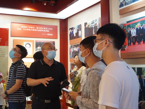 机电工程学院党委书记刘鲁庆针对陈列馆中展示的竺可桢校长的著名“两问”进行了解读,刘鲁庆表示:处在大学阶段的青年学生应明确接受高等教育的目的,强化目标意识,做好日常记录,经过长期积累发表出的言论才是有根据的。