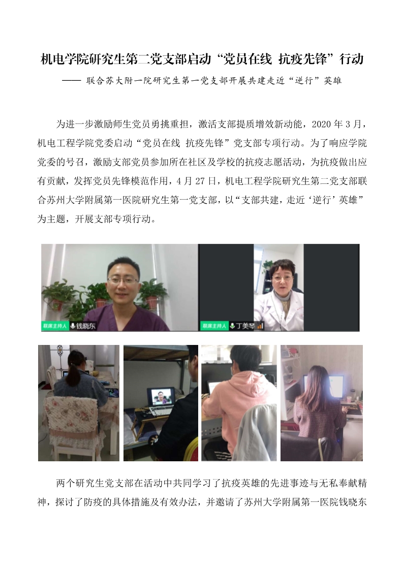 机电学院研究生第二党支部启动“党员在线 抗疫先锋”行动
