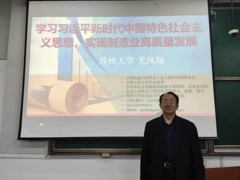 5月13日(星期一)晚,机电工程学院“学习习近平新时代中国特色社会主义思想,实现制造业高质量发展”的讲座顺利举办。原苏州大学机电工程学院副院长,硕士生导师尤凤翔教授应邀宣讲,机电工程学院本科生,研究生入党积极分子共130余人参加讲座。