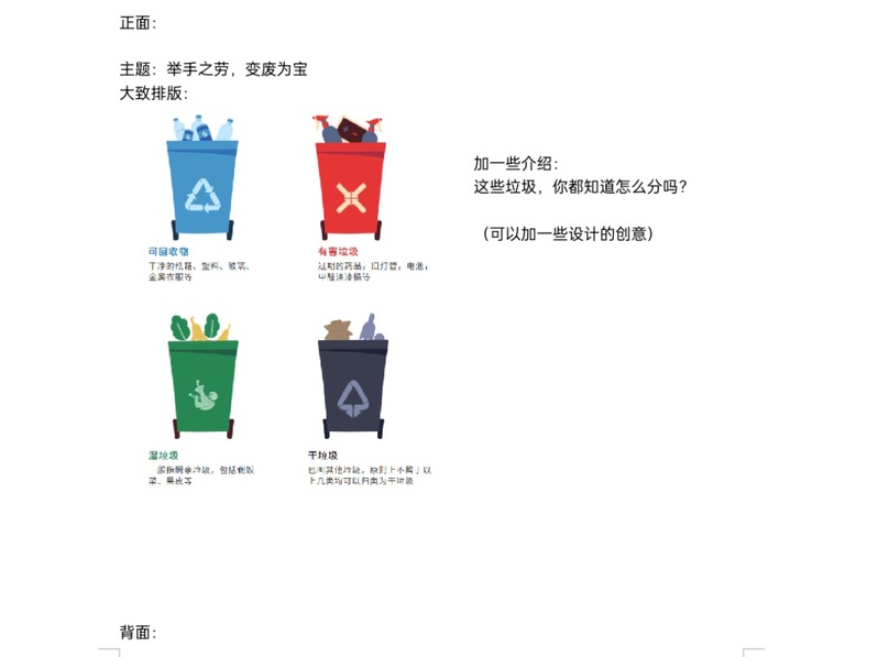 本次垃圾分类宣传活动,团队成员凭借自身的力量为绿色生活做出自己的贡献,正如“星星之火,可以燎原”,一个人的力量也许渺小,但汇集起来必然具有巨大的力量。