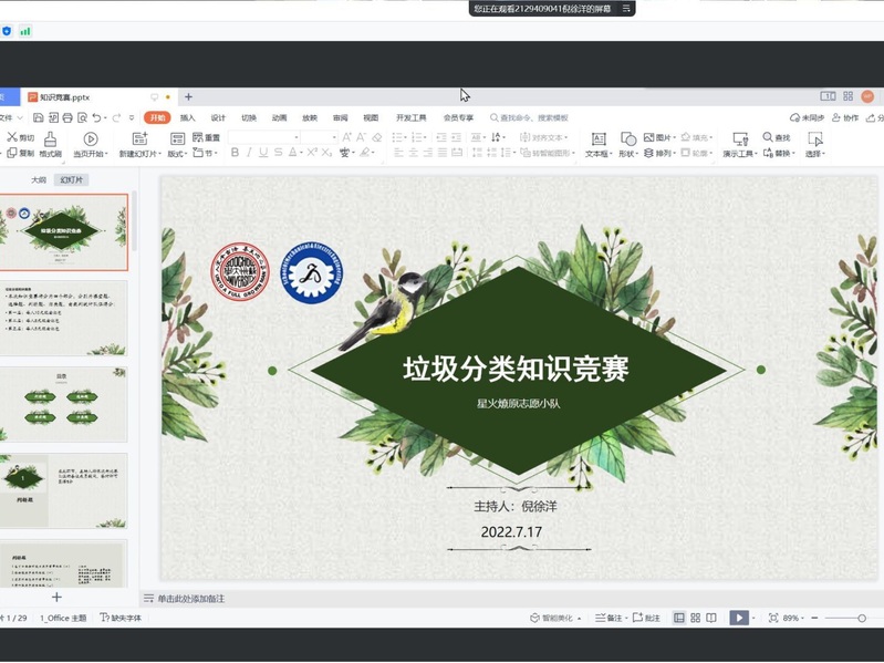 图为团队成员开展线上垃圾分类知识竞赛和知识讲座