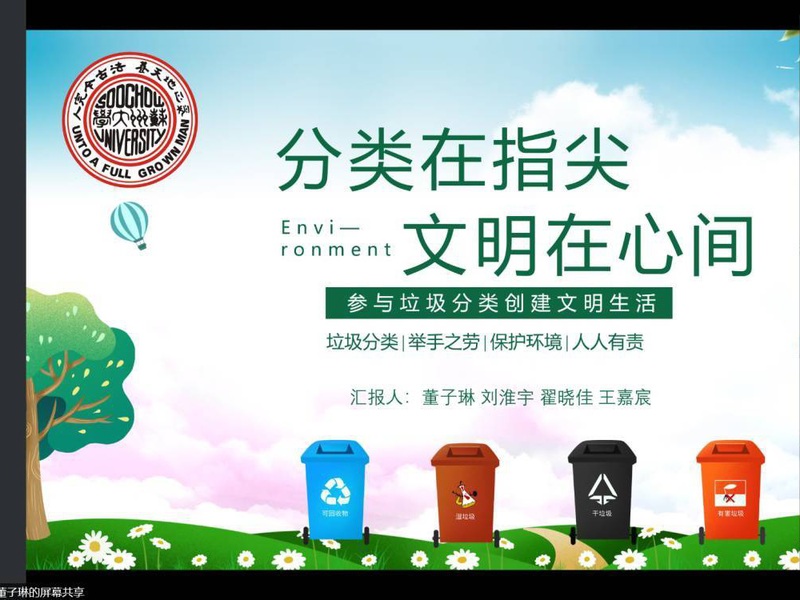 7月12日至17日,苏州大学机电工程学院星火燎原小队以“垃圾分类早一步,绿色生活近一步”为主题宣传垃圾分类知识。