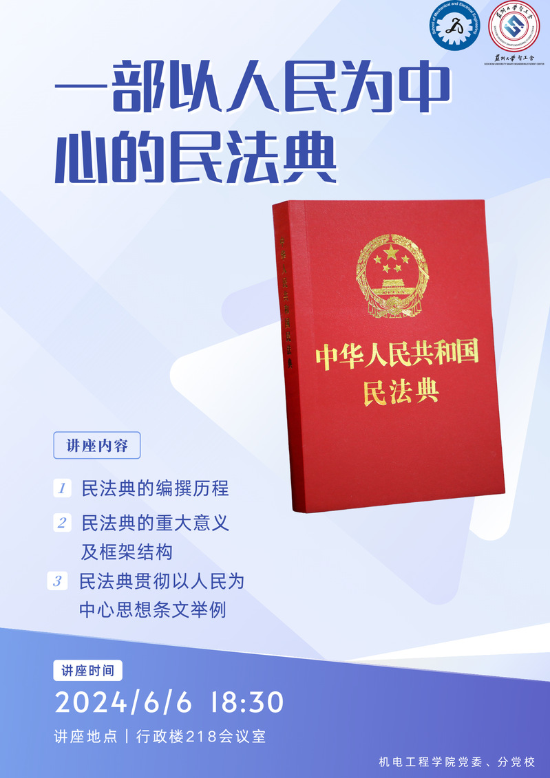 智工先锋之机电工程学院预备党员培训主题讲座-《一部以人民为中心的民法典》