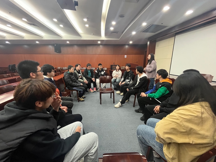在团体辅导环节中,周老师通过分组让参与者们实践应用所学的沟通技巧,提升他们在实际工作中的应变能力。在周老师完成对沟通技巧和应用场景的一番讲解后,参会人员被分成十人一组的不同小组进行了接下来的互动环节。首先从每一个人的自我介绍开始,与会者们积极参与讨论,在介绍自我时大方分享自己的兴趣爱好,通过这种方式互相了解,建立联系,同时也为后续的互动和讨论奠定基础。在自我介绍环节结束后,各小组成员开始相互交流,分享彼此的学习经历和心得体会。在分组实践中,各位同学积极参与,高度配合,在互动和交流中提升了自己的沟通能力和心理健康工作能力。