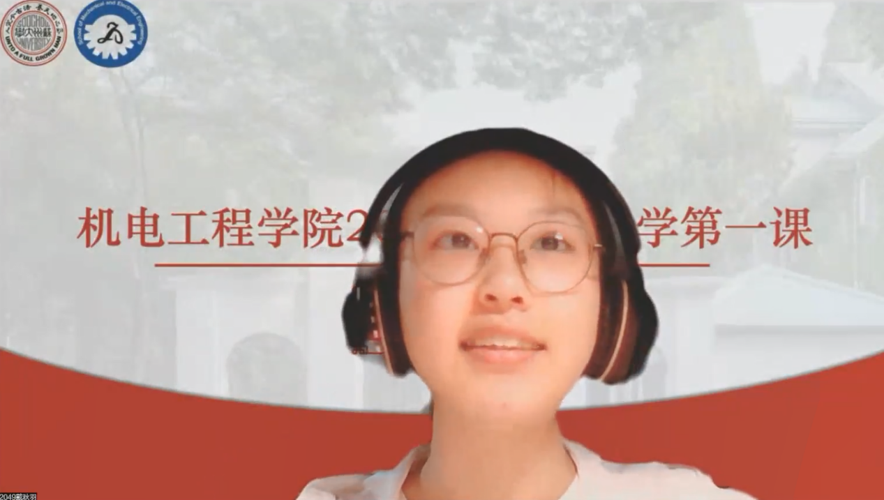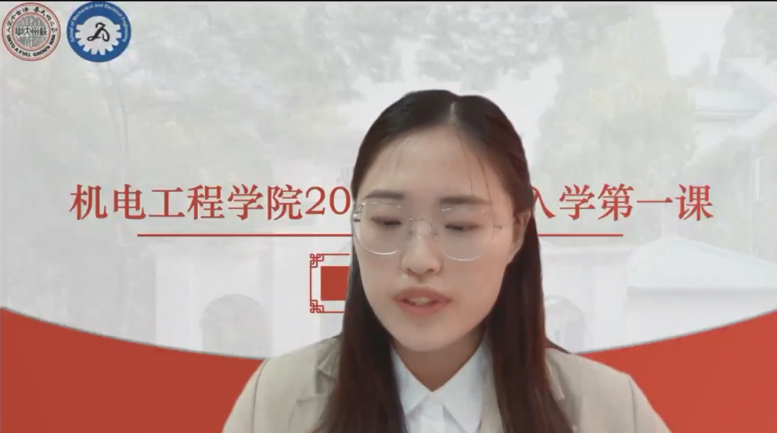 2022级激光制造工程专业的研究生陈雅妮同学,在发言中介绍自己在今年成功实现硕转博,作为学姐,她由衷欢迎大家加入机电工程学院这个大家庭,同时希望新生们能不忘初心、保持学习、勇敢无畏、勇担责任,始终心怀兴国兴邦的伟大理想,承担起自己的历史使命。