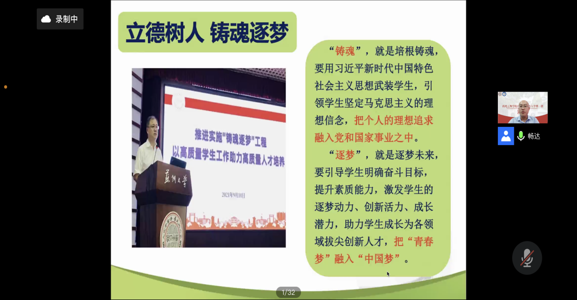 在孙院长的精彩讲话后,刘书记从人生理想和人生价值方面与同学们进行了交流。刘书记将人生规划这一宏大的主题划分成“昨天”“今天”和“明天”三个部分讲述,教会同学们感恩过去、珍惜现在、展望未来。
