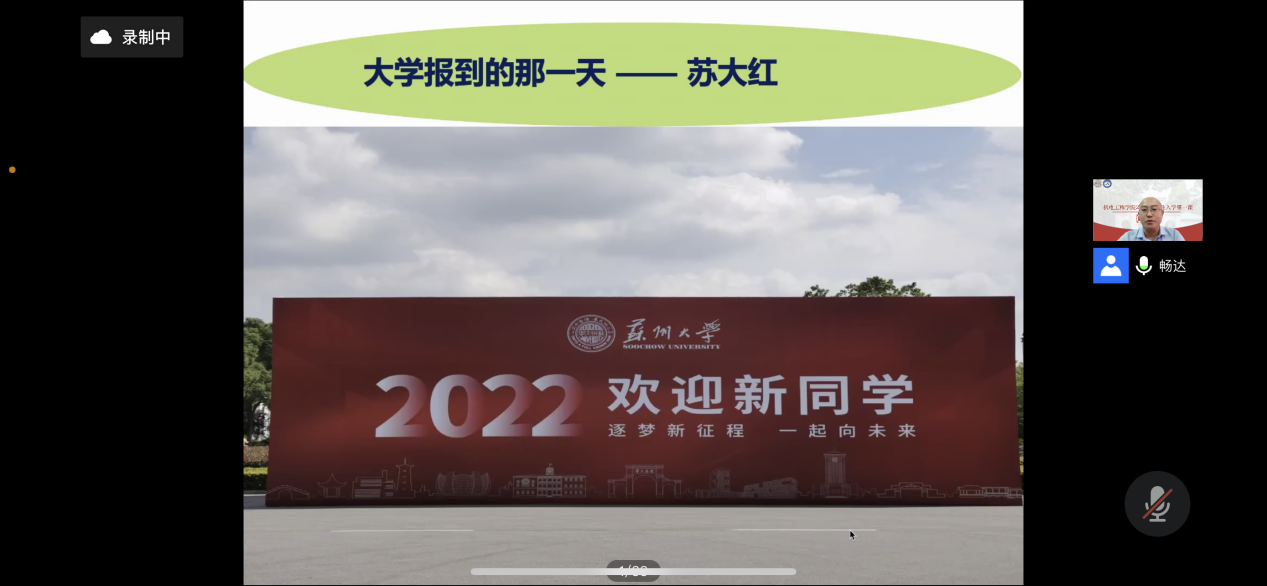 孙院长的讲话让同学们受益匪浅。接下来2022级本科新生代表戴秋羽同学也分享了自己的经历,她的父亲是苏州大学的校友,作为“苏二代”讲述了自己与苏大、与电气专业的故事。戴同学号召同学们将校训“养天地正气,法古今完人”铭记于心,实现人生理想。