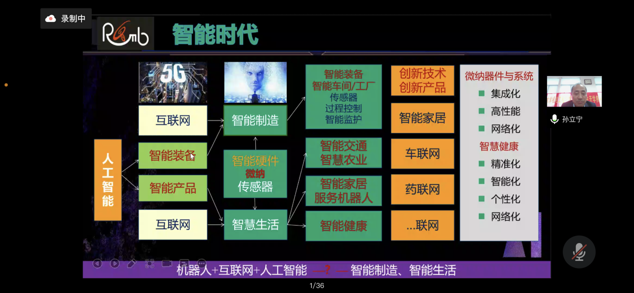 在课上,孙院长指出了中国制造业面临的机遇和挑战,分析了“智能时代”下的智慧科技对我们的教育、生活、医疗和军事等带来的全方位变革。孙院长提到,我国制造业必须实现四大转变,即由要素驱动向创新驱动转变、由低成本竞争优势向质量效益竞争优势转变、由资源消耗大、污染物排放多制造向绿色制造转变、由生产型制造向服务型制造转变。
