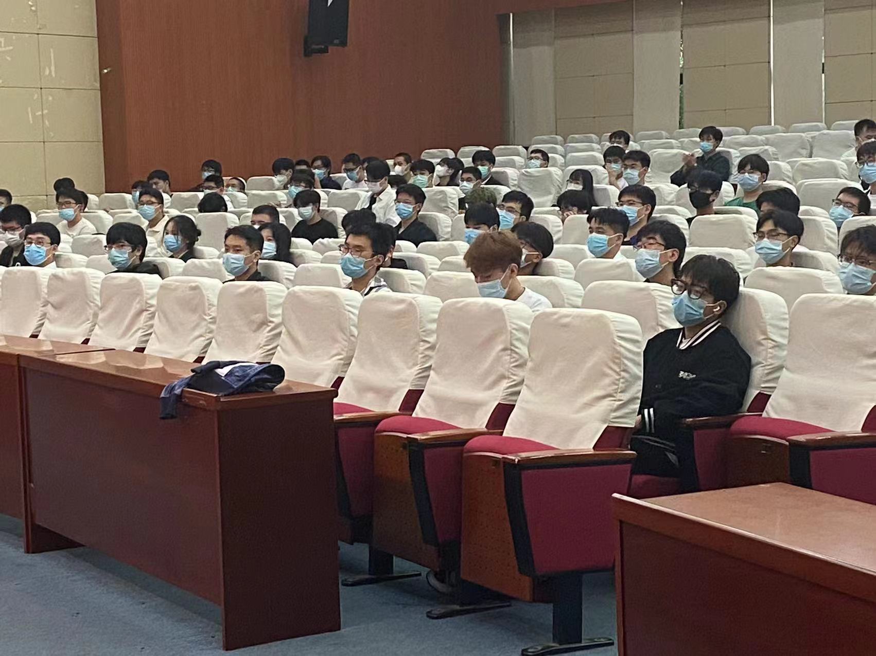 最后,我们邀请了治安科科长黄晓阳老师给新生们做了一次校园安全方面的教育讲座。对防火、防窃、预防意外伤害、尤其对如何防止校园贷、网络诈骗、传销等金融诈骗方面的知识和方法进行了详细的说明。