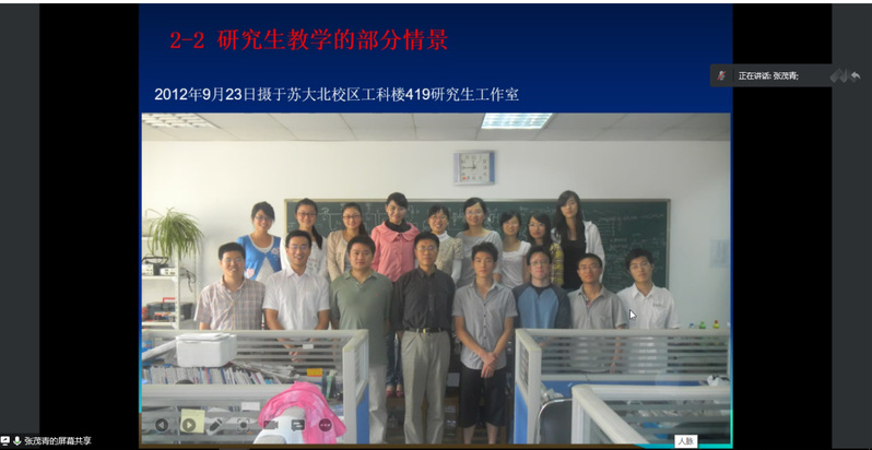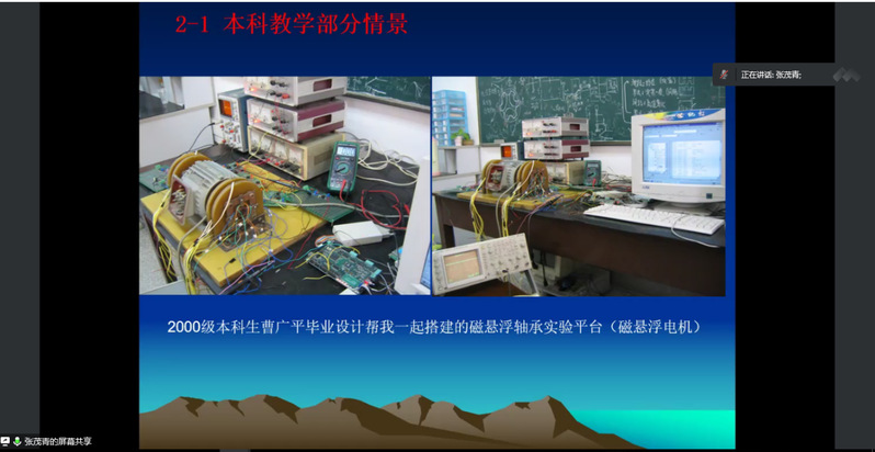 随后,张茂青教授以2008级本科电气4班为例子,向同学们播放了教学实验视频并嘱咐:“同学们工科学生离不开实验,但做实验时一定要在老师的指导下进行,以保证安全为第一要义。”接下来,张茂青教授又分享2005级研究生的执教经历,以贴片机控制系统设计与控制软件的开发以及96式主战坦克发动机辅助启动系统研制为主要切入点,鼓励研究生要勇于实践,敢于创新,不断攀登科学高峰。同时,在科研之余要注重身体健康,多参加文体活动,遵从习近平总书记对于当代大学生的嘱托——新时代青年学子要德智体美劳全面发展。