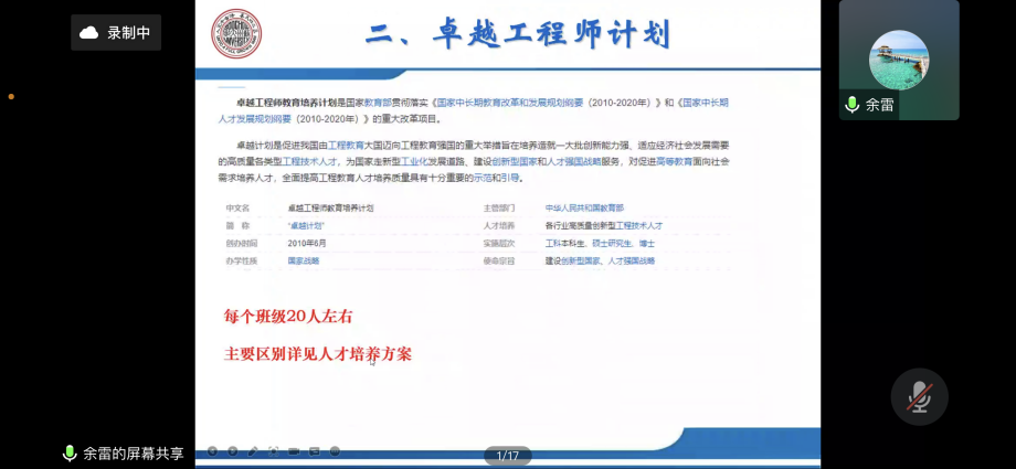 根据疫情防控的要求,本次活动在云端举行,但大家参与线上会议的热情非常高涨。会议分为电气工程及其自动化专业介绍、电气专业导师制介绍以及卓越工程师分流计划讲解三个环节。通过余老师的细致介绍,电气专业本科学生进一步深入了解了导师制的丰富内涵,同时对即将参与的导师科研项目、学科竞赛等方面有了更清晰的认知。