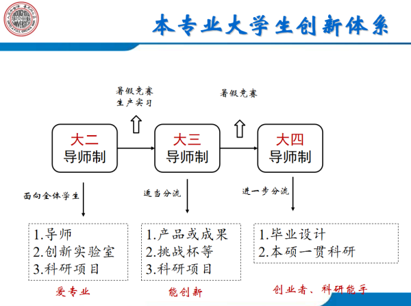 【电气专业导师制介绍】:电气专业的学业导师始终本着支持大学生创新创业、专业认证等需要的出发点,在原有成长陪伴导师制的基础上,从2015级学生起实施面向全体学生的“课外科研导师制”,为学生提供个性化的课外学习指导,引导学生参与课外科研项目和学术竞赛。自科研导师制实施以来,同学们的课外学术活动参与率大幅上升,同时升学率也稳步提高,截至2017级电气班升学率超过50%。同时在电气专业课程体系中,导师制专业研修也成为一门贯穿3个学期的重要学分课。在电气专业的所有科研导师中,各个导师涉及广泛丰富的专业领域,为同学们在选择导师时提供了多方面的选择,同时也负责着不同的竞赛项目,如:挑战杯、互联网+、蓝桥杯、智能制造大赛、机器人大赛以及电子设计竞赛等,为参与科研竞赛的同学提供专业的指导,保证了同学们参赛作品的质量。