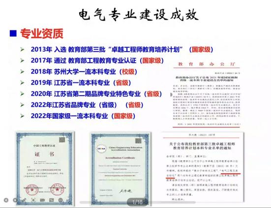 【电气工程及其自动化专业介绍】:苏州大学的电气工程及其自动化专业最早可以追溯到苏州丝绸工学院1980年设置的“工业电气自动化”,历史悠久,底蕴深厚,并且经过长时间的发展,本专业已经拥有“智能机器人技术”二级学科博士点、“控制科学与工程”一级学科硕士点等研究生学位点,并在2022年成功入选国家级一流本科专业建设点。目前电气专业形成了“系所合一,教研一体”的学科布局,教学团队、科研团队以及大学生实践与创新团队密切配合,为每一位同学的四年大学生涯科学布局、保驾护航。除此之外,本专业也新增创新培养模式:设立培养目标、养成优秀人才,同时在此人才培养回路中形成正反馈,不断积累总结经验,持续改进提高,为培养创新型人才制定了良好的方案策略。