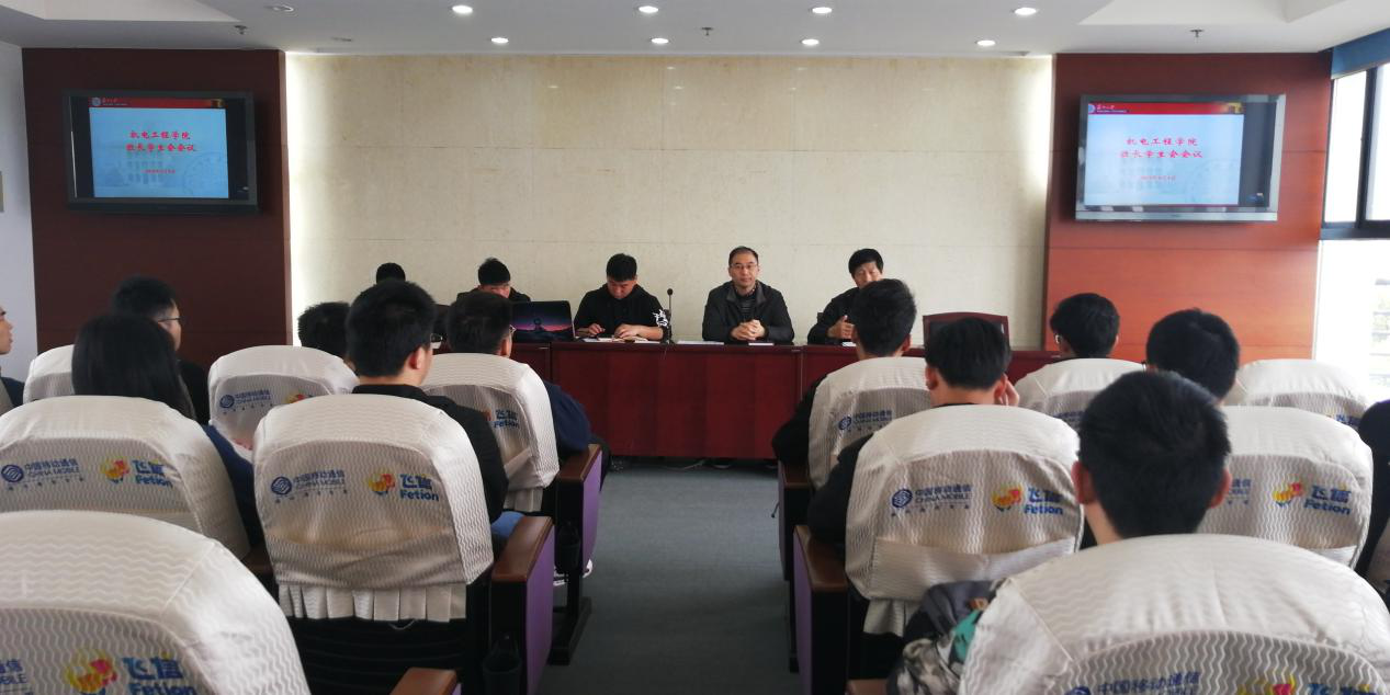 2019年4月4日中午,机电工程学院自考学生会在行政楼300会议室召开班长学生会会议。机电工程学院副院长孙海鹰老师、林健荣老师、各班级班长、安全员及学生会全体成员出席会议。会议由机电工程学院自考学生会主席李传涛同学主持。