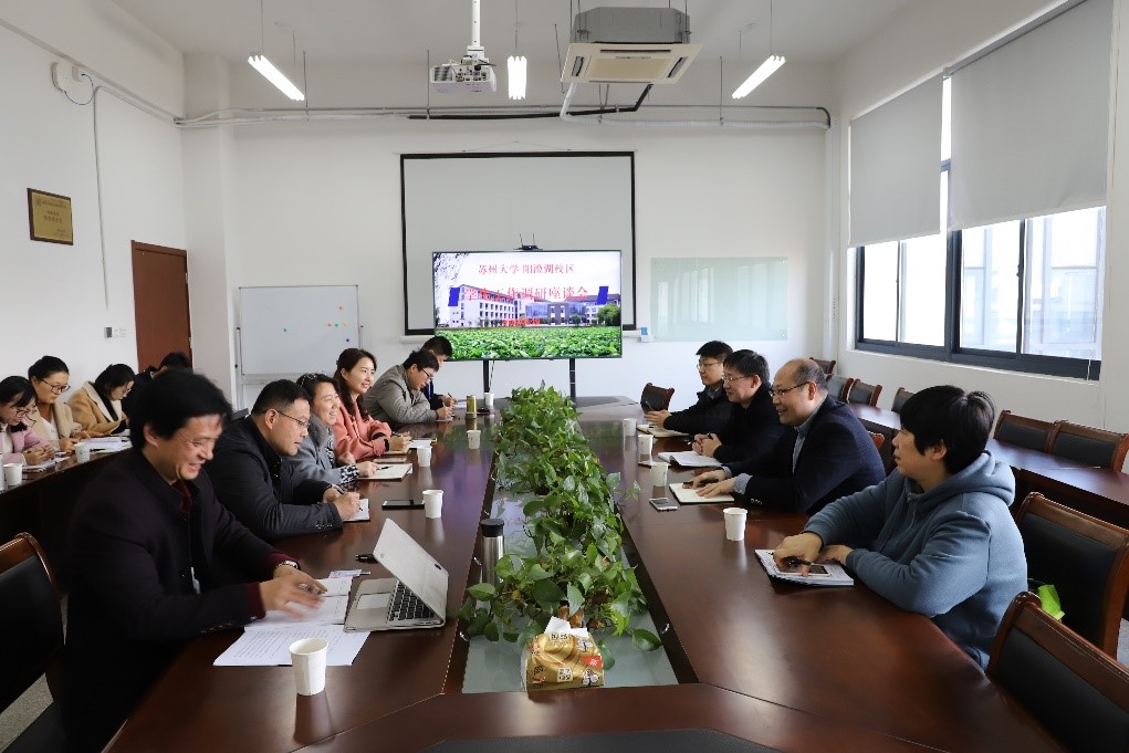 3月19日上午,校党委常委、副校长刘标带领党委研究生工作部、学生处和团委领导一行4人来到阳澄湖校区开展学生工作专题调研座谈会,对各学院的基本情况、存在的困难和问题进行了详细的了解和分析,并就“学生成长陪伴计划 ”、“创新创业教育”、“学生工作考评”主题听取了三个学院的汇报。