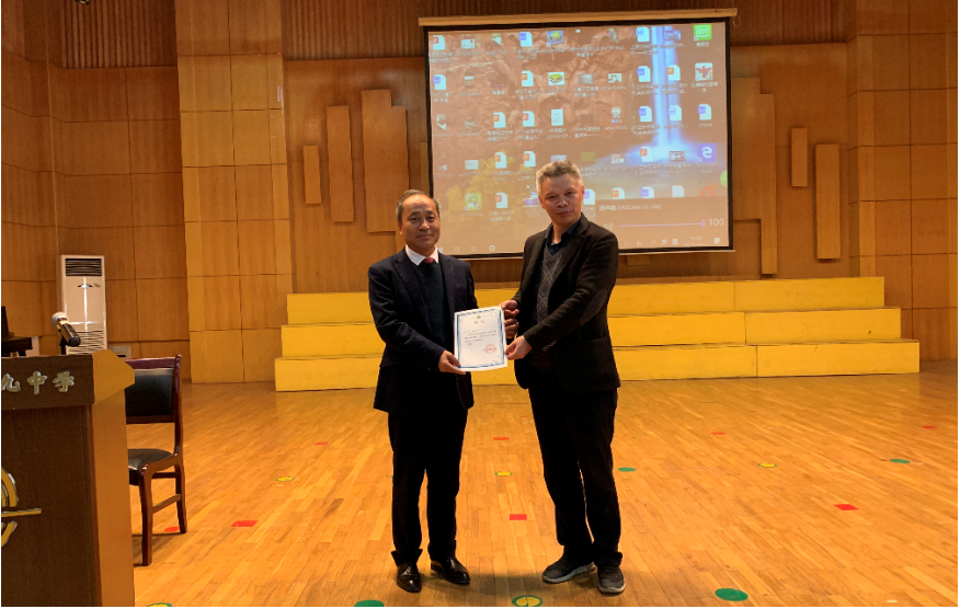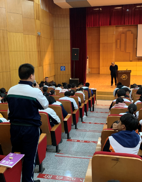 下午4时,一行三人辗转到达武汉第四十九中,四十九中党委书记胡正茂主持讲座,并代表学校聘请孙院长作为该校的职业生涯规划客座教授并颁发聘书。