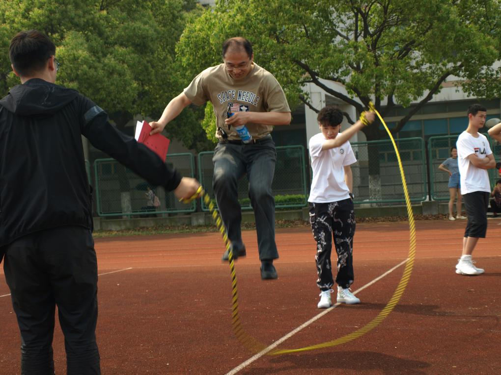 当绳子飞扬过选手们的头顶,脚步轻盈而又快速地跃过这道“阻碍”,这将成为一道最美的弧线。跳大绳的机电学子,就是不“卡”绳。一旁的孙海鹰副院长在这一刻仿佛也回到了大学时代,饶有兴趣地加入到跳绳的队伍中,和选手们一起体验其中的乐趣。