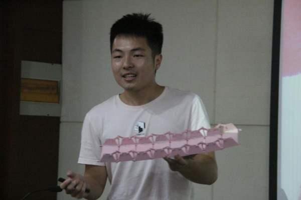 作品展示及答辩现场,十二支队伍带着自己的作品依次上台宣讲。每位组员分工明确:或以ppt为媒介,讲述桥梁的设计与制作理念;或将实体在评委面前展示,指出作品中暗藏的“小玄机”;或侃侃而谈,机智应对评委的刁钻问题......在一次次的“针锋相对”中,每组参赛队伍都精彩地展现了当代大学生的风采。每座桥梁,凝结的是参赛者的辛勤付出,蕴藏的是无穷的知识与智慧。