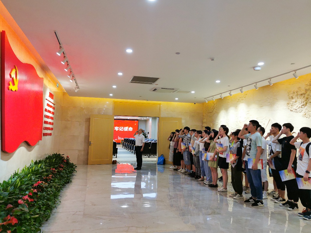 参观结束后,我院党委为在场每一位毕业生党员送上党员纪念卡,殷殷叮嘱学生党员们不忘初心、牢记使命。最后,在气势恢宏的中国革命历史壁画前,面向鲜红的中国共产党党旗,党委书记刘鲁庆带领参加活动的党员师生重温入党誓词,在铿锵誓言中牢记为民宗旨,坚定廉洁自律信心,争做合格党员。
