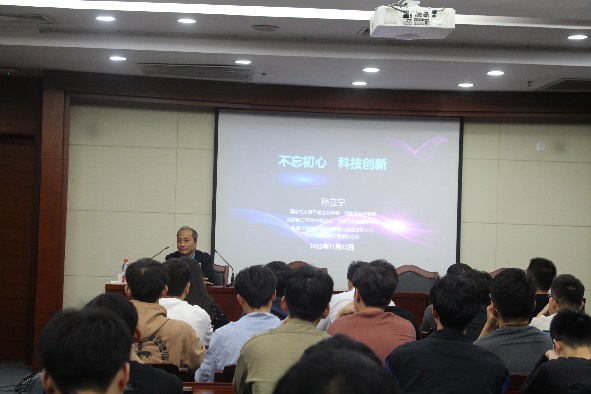 孙立宁教授首先作了题为“不忘初心,科技创新”的专题分享,结合自身对学生时代科研生活的思考和认识,分别从初心与使命、创新与贡献、希望与寄语三个方面对同学们进行了学习指导,既有人生哲理,又有经验体会,既传递了温暖关爱,又给予了殷切期望,让学生们深受启发、备受鼓舞。