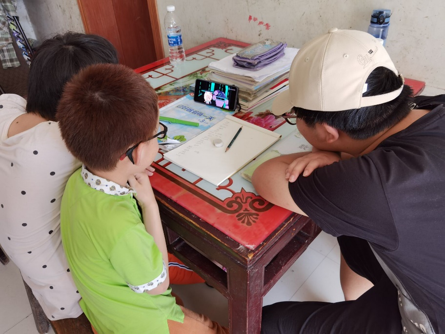 今天一队成员依旧于八点半来到小慧同学家,昨天已为小慧同学解开了心结,今天的辅导过程便安心了很多,成员们从始至终都能感受到小慧内心的快乐。这些困境儿童的家庭很脆弱,他们的心灵也很脆弱,这就更需要志愿者们的疏通开导。