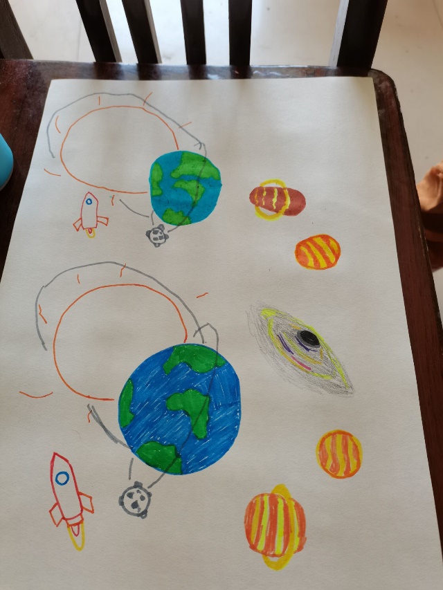 采取恰当的方法后,成员们早早地结束了日程安排的进度。空余时间,成员们积极带领小朋友们拓宽视野、了解外面的世界。浩瀚的宇宙隐藏着许多秘密,等待着人类去探索发现。成员们带着弟弟一起绘画地球、月球、火箭,为他读公众号“北京天文馆”的相关文章,还搜寻各式各样的宇宙图片...小朋友对宇宙的美有了初步的了解。正如星云辽阔,宇宙茫茫,每个人的未来都有无限的可能,加油!