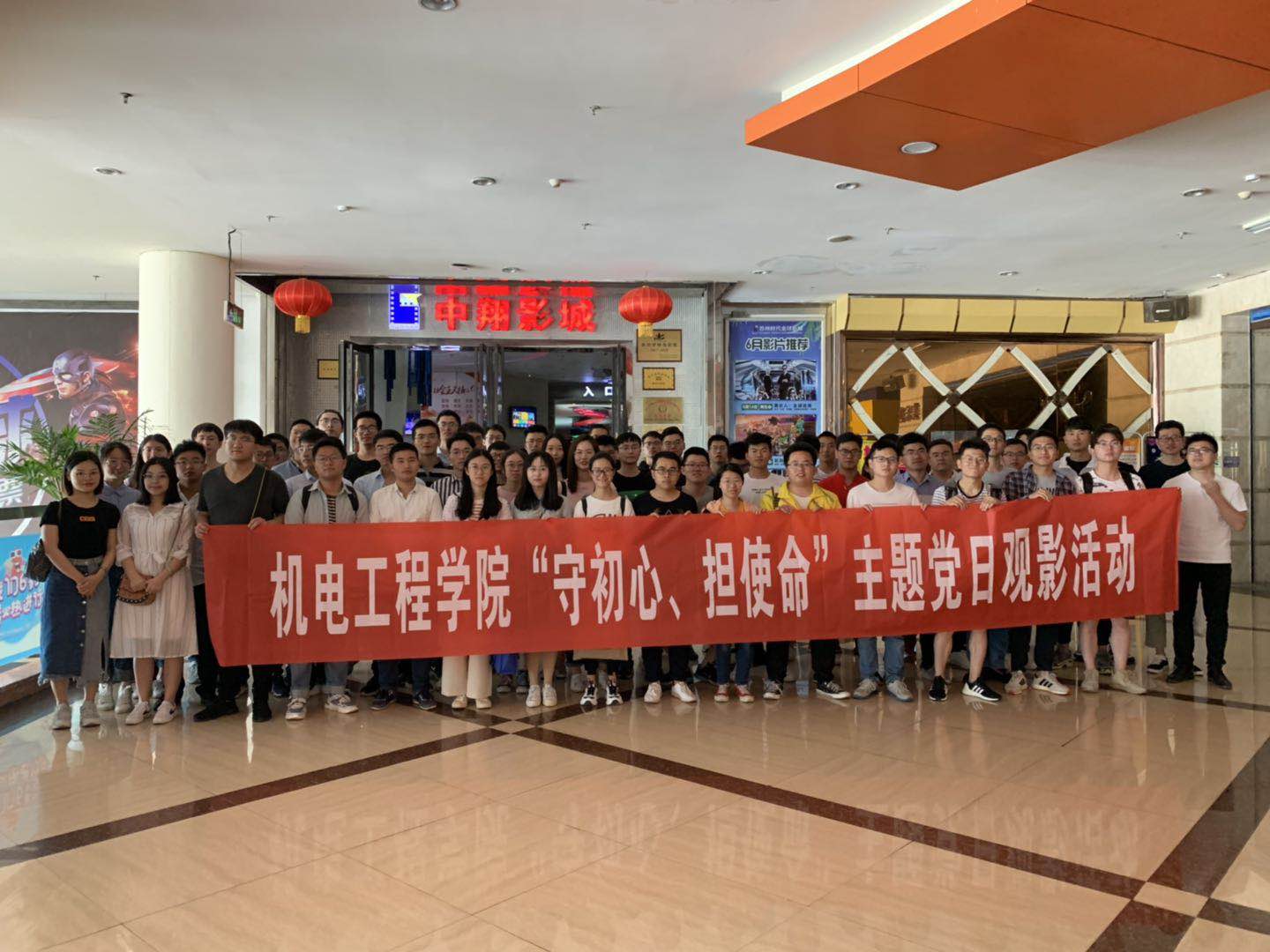为深入学习周总理工作作风与行为规范,重温党的红色记忆,铭记党的奋斗历史,2019年6月3日上午,机电工程学院党委组织2019届毕业生党员、2017级研究生党员赴苏州时代金球影城开展“守初心,担使命”主题党日观影活动,观看为新中国成立七十周年献礼巨制的影片《周恩来回延安》。